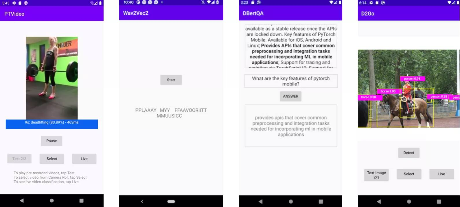我们正在发布一个基于PyTorch视频库的新视频应用程序和一个基于最新torchaudio,wave2vec模型的更新语音识别应用程序。两者都可以在iOS和Android上使用。此外,我们还更新了七个计算机视觉和三个自然语言处理演示应用程序,包括HuggingFace DistilBERT和DeiT视觉变压器模型,使用PyTorch Mobile v1.9。随着这两个应用程序的加入,我们现在提供了一整套涵盖图像、文本、音频和视频的演示应用程序。要开始使用,请查看我们的iOS演示应用程序和Android演示应用程序。