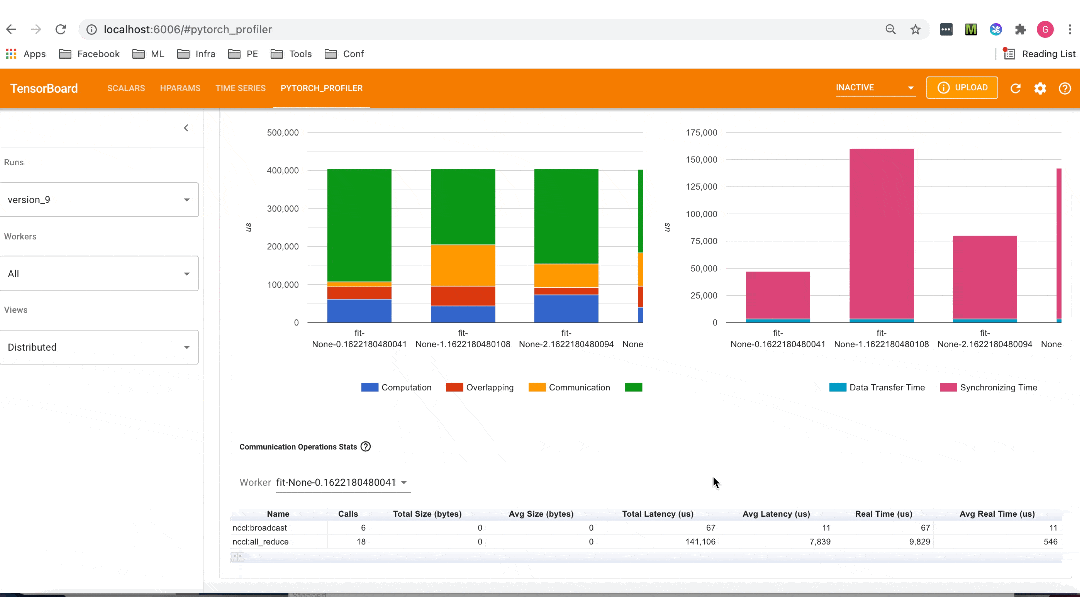(Beta)支持分析分布式集体:PyTorch的分析器工具,torch.profiler和torch.autograd.profiler,能够分析分布式集合体和点对点通信原语,包括allreduce,alltoall,allgather,send/recv等。这为PyTorch原生支持的所有后端启用:gloo、mpi和nccl。这可用于调试性能问题,分析包含分布式通信的痕迹,并深入了解使用分布式训练的应用程序的性能。要了解更多信息,请参阅此文档。